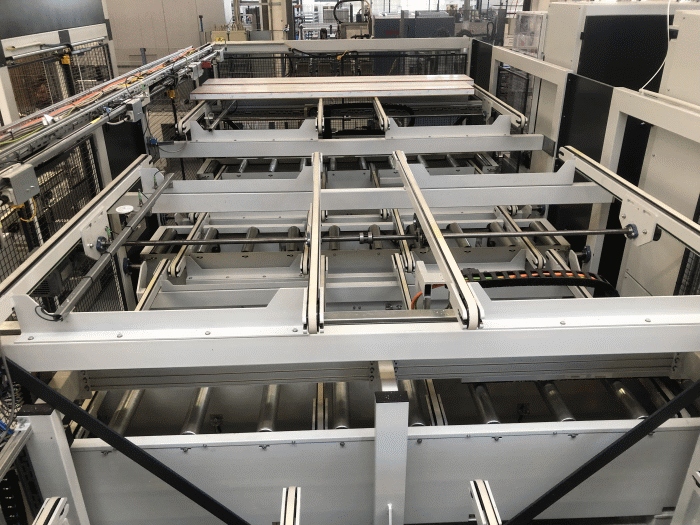 Diese Modulbänder nehmen die lackiert und getrockneten Zementfaserplatten auf und